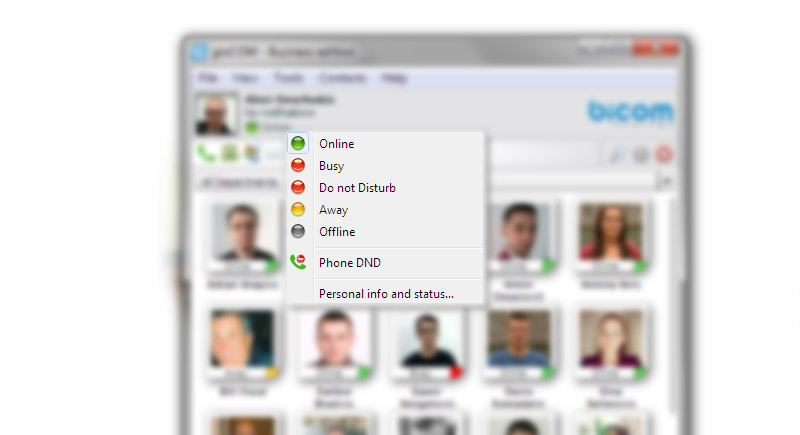 |  | Office phone control, dynamic conferencing gloCOM allows users to exercise office phone control features remotely without physically touching phone. Polycom IP phone series are fully supported devices. | | | | The best communication solution for an office worker Use simple drag and drop actions to add users to call /chat /conference/group chat, make blind and attended transfers. Chat with one or more Users (single & group chat) at the same time, and keep a searchable history of every chat conversation. |  | | | |  | The easiest setup in the industry - automatic integration of many phone manufacturers
